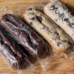 7. Roll the chai logs in a cinnamon-sugar mixture, the cherry logs in raw sugar, and the hazelnut logs in finely chopped nuts before slicing all logs into 1/2-inch thick rounds.