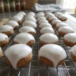 - Whisk powdered sugar and hot water into a thick glaze, dip each cookie to coat, and allow them to set on a rack until the shell is firm.